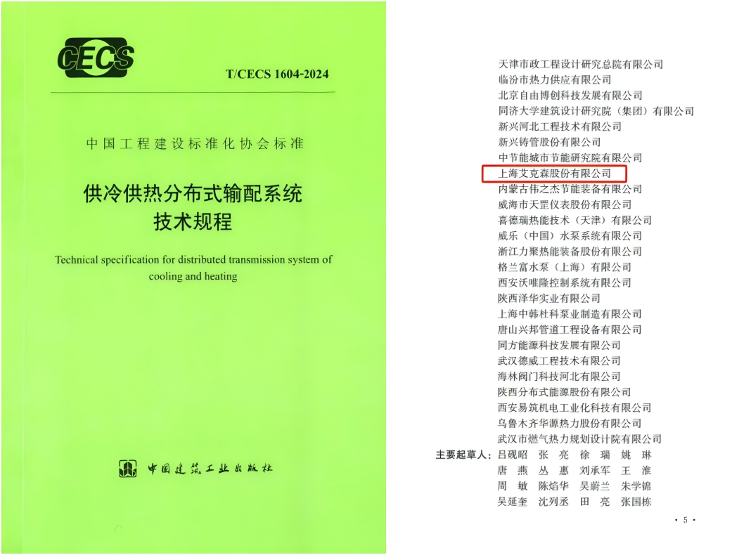 25/10/30 上海艾克森、同濟大學(xué)等參與起草的《供冷供熱分布式輸配系統(tǒng)技術(shù)規(guī)程》發(fā)布實施