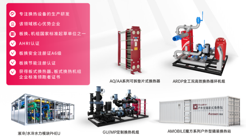本次會議重點展示了三大核心產品線,板式換熱器與板式換熱機組,預制化集成式冷卻系統(tǒng)。在暖通空調行業(yè),經濟、安全、可靠的可拆墊片式換熱器能夠滿足大部分的場合應用,由板片采用帶免粘式墊片組成換熱核心元件,這種類型的換熱器具有非常高的傳熱系數,同時有非常好的經濟性價比,在HVAC使用過程中經濟安全可靠和拆洗維護方便等特點,艾克森還有滿足AHRI認證的系列換熱器,能更好的滿足高性能小溫差的高端需求。艾克森GU/MP系列換熱機組結合領先的技術以及豐富的經驗和站在行業(yè)的前沿的高度選配,同時設計優(yōu)化制冷空調系統(tǒng)的節(jié)能潛力,優(yōu)化輸配系統(tǒng)阻力和仿真運行,切實降低設備運行能耗。預制化解決方案通過模塊化設計、預制化組裝,大大減少了現(xiàn)場施工和安裝的難度,提高項目質量和確保項目快速安裝和交付,降低項目實施風險。