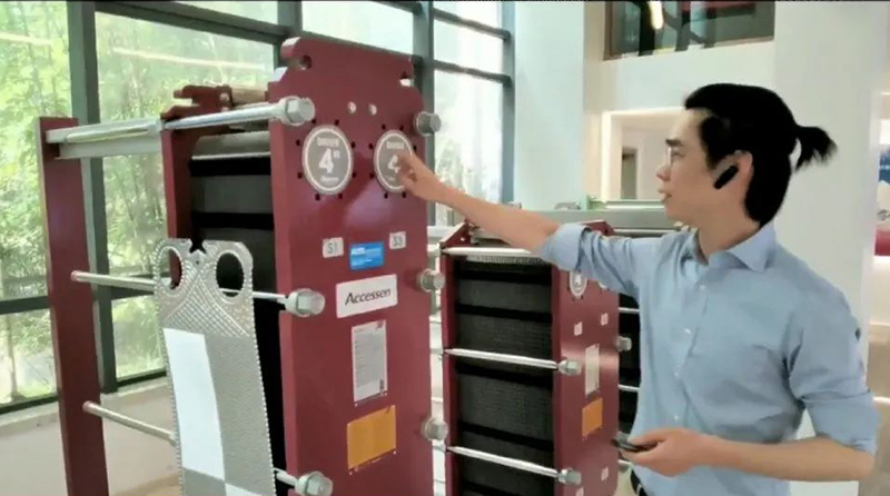 直播重點(diǎn)詳細(xì)介紹了AHRI認(rèn)證板式換熱器的設(shè)計(jì)原理和應(yīng)用場(chǎng)合,以及艾克森的換熱器產(chǎn)品設(shè)計(jì)特點(diǎn),接口銹鋼的襯套,滿足了過流部件均為不銹鋼,避免水質(zhì)污染,相比橡膠襯套而言使用壽命更長(zhǎng);考慮到日后的維護(hù)需求,螺紋保護(hù)套采用不銹鋼的,能滿足更長(zhǎng)時(shí)間的使用,產(chǎn)品的板片設(shè)計(jì)等技術(shù)核心;整個(gè)參觀過程中通過宣傳片和視頻,展示了太倉工廠的生產(chǎn)設(shè)備和加工生產(chǎn)過程。