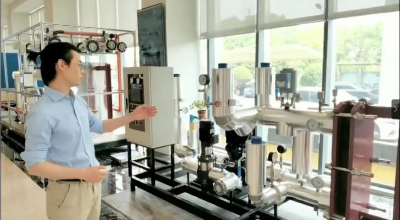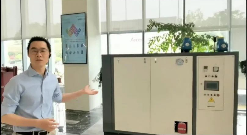 跟隨鏡頭,艾克森技術(shù)支持徐工,帶領(lǐng)大家走進(jìn)艾克森產(chǎn)品展廳,通過視頻徐工介紹了展廳內(nèi)的主要產(chǎn)品:模塊化機(jī)組——根據(jù)客戶的需求進(jìn)行組合,可以于供熱,暖通空調(diào)和一些工業(yè)場(chǎng)合。