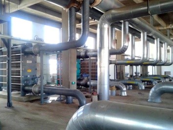 首站或中繼隔壓站主要就是通過換熱器進(jìn)行壓力隔斷,同時(shí)保證溫度的下降最小,是整個(gè)節(jié)能降耗系統(tǒng)內(nèi)的關(guān)鍵點(diǎn)之一。將熱源廠出來高溫高壓的熱水,通過板式換熱器將二次側(cè)水加熱后作為二級(jí)換熱站的熱源使用,實(shí)現(xiàn)高溫高壓輸送、低溫低壓使用的理念。2011年煙臺(tái)福山熱力采用了兩臺(tái)AN30系列換熱器,單臺(tái)熱負(fù)荷52MW,設(shè)計(jì)壓力16Bar。艾克森開發(fā)的AN、AP系列首站/隔壓站用換熱器有14個(gè)型號(hào),單臺(tái)最大80MW,壓力25Bar,具有單臺(tái)熱負(fù)荷大、單側(cè)溫差大、對數(shù)溫差小、流量大、設(shè)計(jì)壓力高等特點(diǎn)。廣泛使用于山東海陽宏峰熱力、內(nèi)蒙古特弘熱力集團(tuán)、新疆烏蘇市供熱、新疆呼圖壁集中供熱等諸多集中供熱首站或中斷隔壓站項(xiàng)目中。