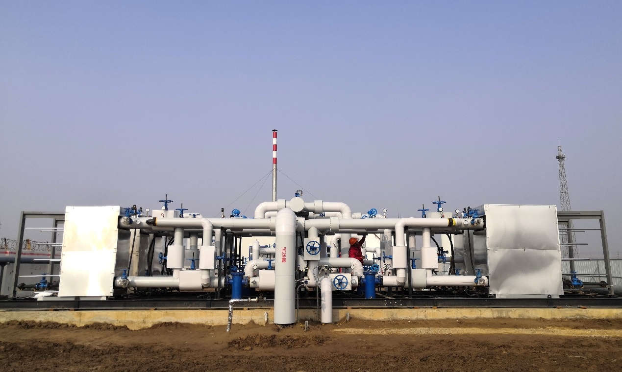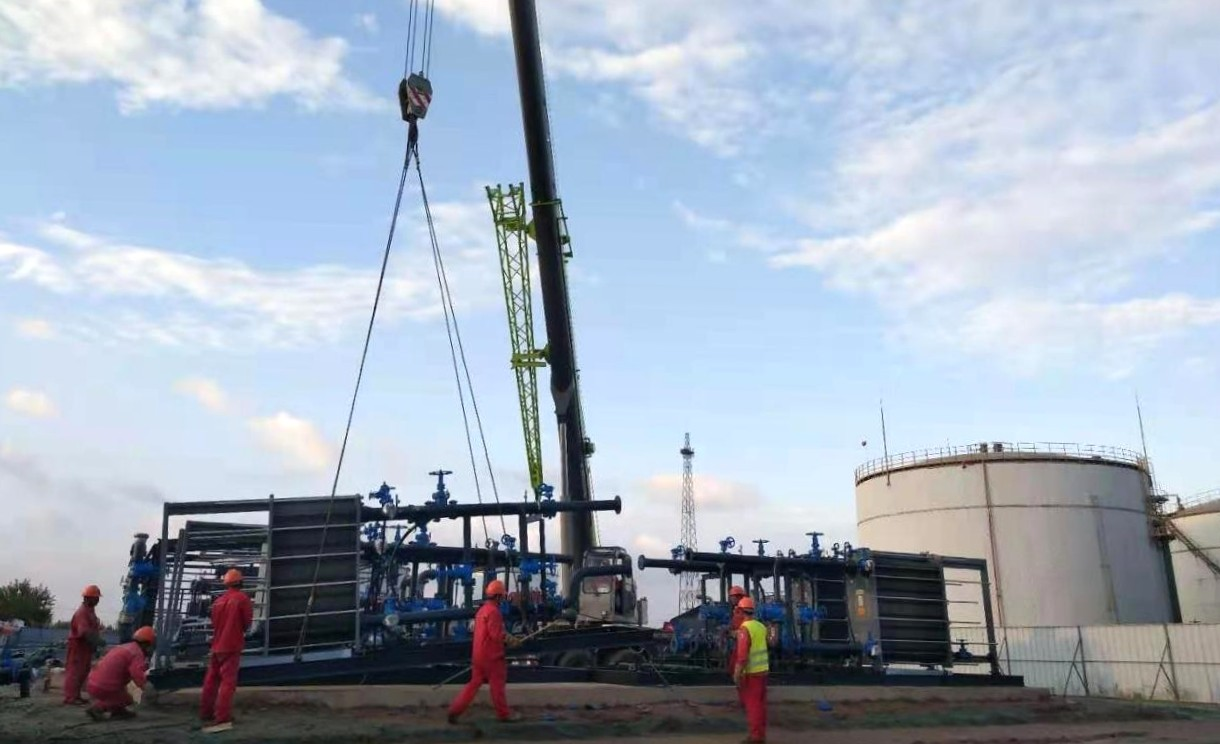 用于勝利油田河口采油廠義和聯(lián)合站污水余熱利用項目的工業(yè)換熱撬裝裝置是艾克森為勝利油田定制的系統(tǒng)集成產(chǎn)品。艾克森結(jié)合二十多年的集成產(chǎn)品和應用經(jīng)驗,將原有項目的換熱器部件加現(xiàn)場安裝方式變成預制化集成撬裝整機交付,設備到場后僅需吊裝和管道連接,解決了聯(lián)合站防爆和快速交付需求,過程零動火施工同時實現(xiàn)了不停產(chǎn)改造;結(jié)合流體是含蠟量高、腐蝕速率高的復雜介質(zhì),采用高流通能力板型和耐腐蝕合金材料;面對井場可用面積小,艾克森優(yōu)化結(jié)構(gòu)設計,并加裝自動反沖洗。經(jīng)過艾克森技術(shù)團隊與用戶多次溝通技術(shù)交流,結(jié)合設計討論和技術(shù)論證及現(xiàn)場勘查,最終選用的MP/GU系列工業(yè)換熱撬裝解決方案,設備整體撬裝出廠,現(xiàn)場接管即用,施工風險歸零,換熱器采用特種合金板片+專利流道設計+自動反沖洗技術(shù)多項技術(shù)融合,解決聯(lián)合站內(nèi)原油高含蠟流體難題,很好的滿足了項目長期穩(wěn)定和低能耗運行。